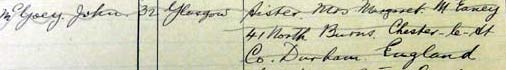 1909 His mother, Mary Catherine McGoey (nee Banks) dies in Glasgow aged 53