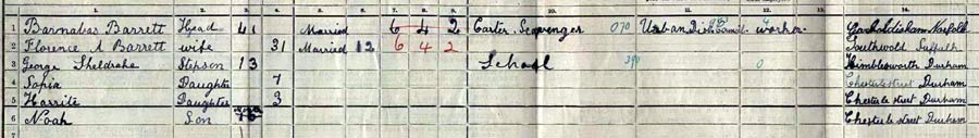 1911 census at 41 North Burns, Chester le Street. This is the address he gives in 1915 for his sister. No sign of his sister there at this date. If she ever lived here, it must be after 1911.