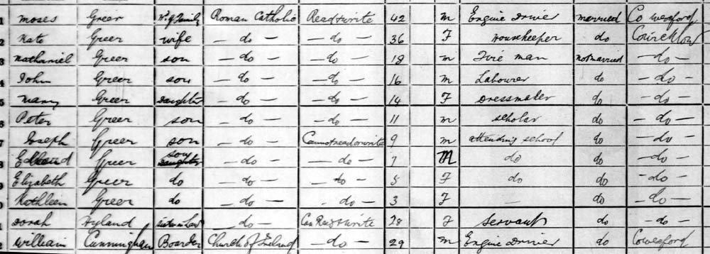 1911 census shows that John Greer by his absence was away in the army, his father Moses Greer was working as a servant in Wexford and the other children were living with their aunt Dora Hyland at 4 Dock Terrace, Bray. Moses Greer, John's father was working as a servant in Wexford. Something has obviously happened for his father to move from an engine driver to a servant.