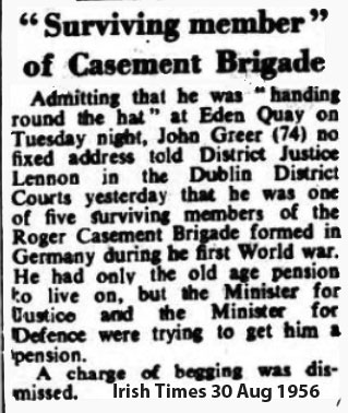 Greer's medals were forfeited for "misconduct". Casements trial docs quote an ex prisoner William Egan gave evidence that Bailey ( who landed with Casement at Banna Strand) joined the Irish Brigade with Greer and Scanlan.