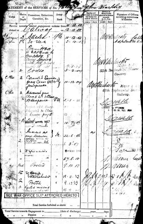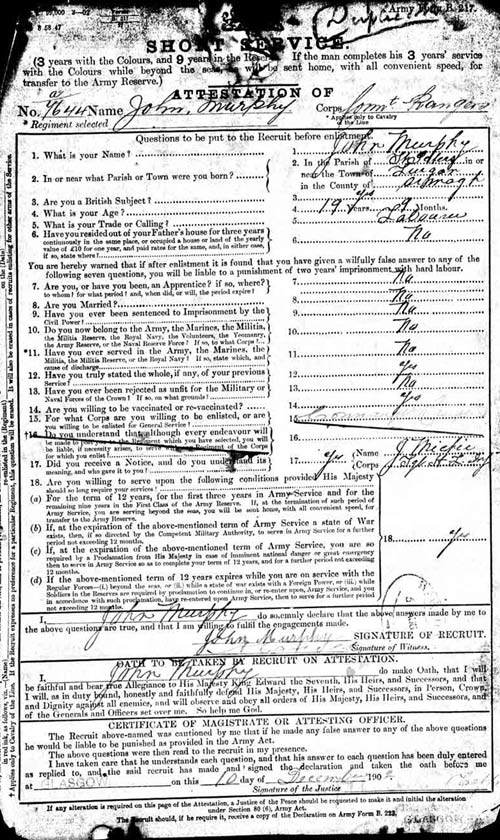 J Murphy, Service Record